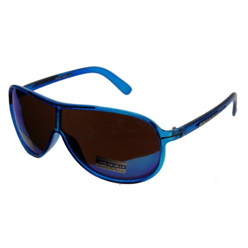 Arctic Blue Sunglasses offer a sleek sporty appeal in the latest styles. Arctic Blue Sunglasses are cool sunglasses with blue mirror lenses. Blue mirror lenses are very popular because they tend to be a bit darker than the normal charcoal lens and your eyes are invisible to others.