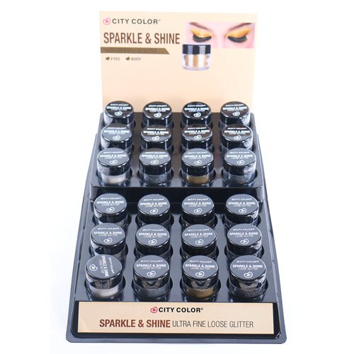 CITY COLOR Sparkle & Shine Loose Glitter A Display Case Set 24 Pieces Shine Loose Glitter allows you to add a fun, glamorous and bold look of sparkle to