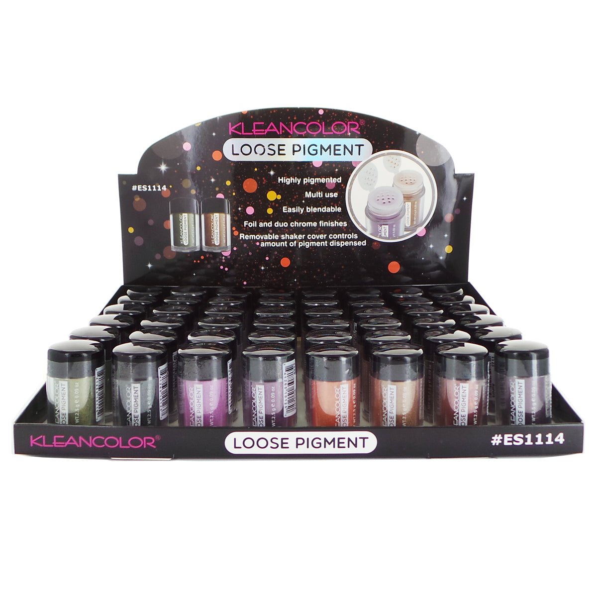 KLEANCOLOR Loose Pigment Eyeshadow ES1114 Display Set, 48 Pieces For use on eyes and face, the possibilities are endless with Loose Pigment Eyeshadow. Apply