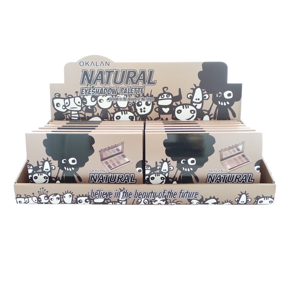OKALAN 10 Shade Natural Eyeshadow Palette Display Set, 12 Pieces Your eyes will glow with this 10 shade eyeshadow palette containing both matte and shimmer
